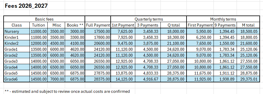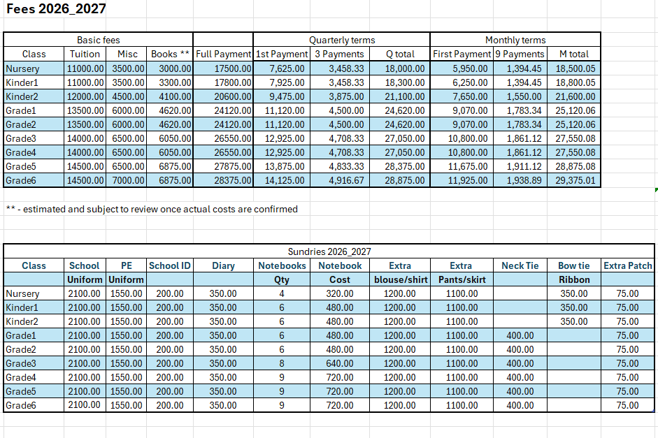School year 2026 - 2027 will open 13 June 2026 with Parents Orientation on premises, Students Orientation and first classes 15 June, 2026.